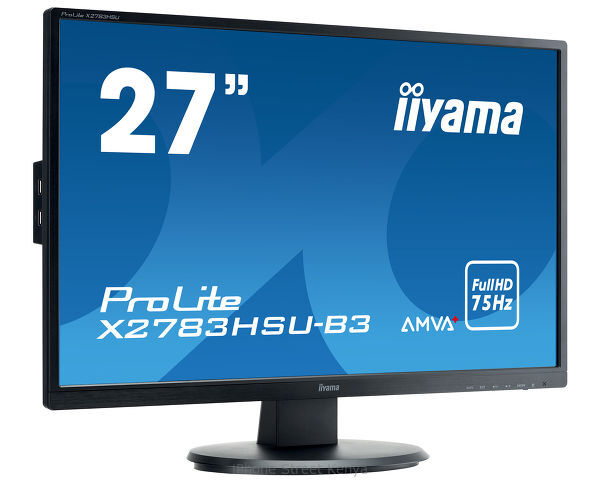 ProLite X2783HSU - a 27” LED-backlit LCD Screen featuring AMVA+ panel technology, guarantees accurate and consistent colour reproduction with wide viewing angles. Offering 24-bit ‘True Colour’ and great performance for displaying Black and White with the 3000:1 Native Contrast Ratio, means that the Prolite X2783HSU will provide excellent performance for Photographic, Design and Web-design. With the added support of a Low Power LED Panel, the iiyama Prolite X2783HSU is also an excellent choice for Universities, Corporate and Financial Markets.
