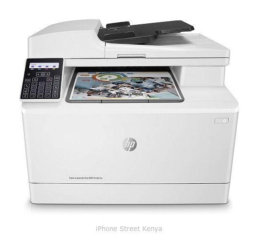 The HP LaserJet Pro 179FNW series has all the hallmarks of a modern business printer. It contains features like Wi-Fi, networking, and cloud printing. Also, smartphone compatibility and an automatic document feeder make this printer a great item due to easy connectivity. With efficient high-speed color printing, this printer is designed to meet the unique needs of modern enterprises. In the box, you get the printer with introductory color and mono cartridges with a print yield of 700 and 800 pages, respectively. You can purchase this printer at Nairobi Computer Shop for an affordable price.